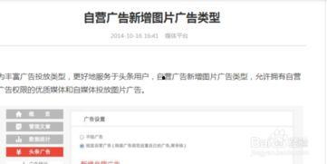 你有没有想过,在今日头条上发个广告,竟然能变成赚钱的小能手?没错,就是那个我们每天刷个不停,看看新闻、娱乐八卦的小平台,竟然能成为我们赚钱的秘密基地!今天,就让我带你一起探索如何在今日头条上找到你的广告收益宝藏吧!
